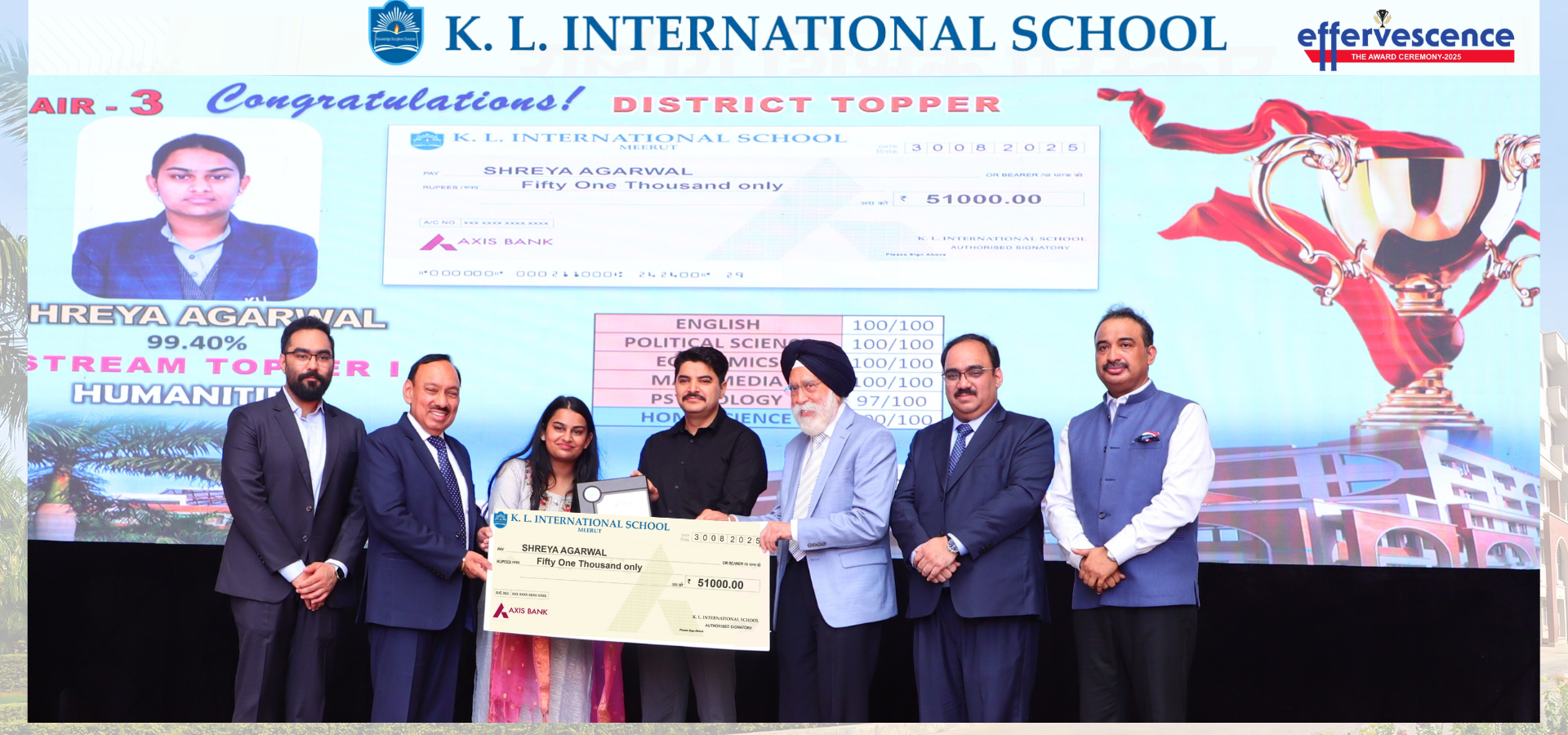 Welcome to K.L. International School, Meerut, an English Medium Co-educational Senior Secondary School, that combines the very best in educational practices, powered and propelled by a philosophy of education that is eclectic and yet truly modern. Rated as the most promising CBSE-affiliated school of Western U.P, the school offers education to children from Kindergarten to Senior Secondary level.