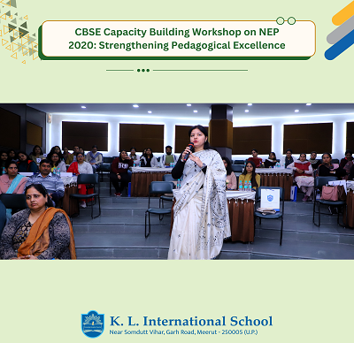 A CBSE Capacity Building Programme on the National Education Policy (NEP) 2020 was successfully conducted at K. L. International School, Meerut on 10 February 2026. The workshop witnessed the participation of 70 teachers from various schools of Ghaziabad, Gurugram, Haryana, Faridabad etc., making it a vibrant platform for professional learning and collaboration.