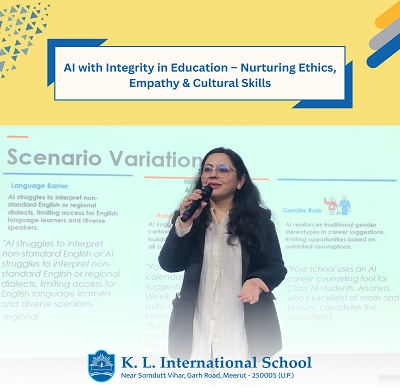 TUK Publications and Medalist Publications, organized an insightful workshop titled “AI with Integrity in Education: Nurturing Ethics, Empathy and Cultural Skills” for the teachers of the school. The session was led by Ms. Manisha Kohli, an AI expert and esteemed AIFC Community member, who carries over 15 years of experience in the field. With her composed and clear approach, she guided teachers through the evolving world of Artificial Intelligence, showing how technology can be meaningfully balanced with ethics, empathy and cultural values. Ms. Kohli stressed the responsible use of AI in classrooms, focusing on fairness, transparency, trust and accountability. She highlighted that although AI can boost creativity and efficiency, it should never replace human connection, cultural sensitivity or the moral judgement that defines a teacher. The learning goals centred on enabling educators to make ethical decisions, encourage emotional intelligence and maintain cultural awareness while adopting modern AI tools.