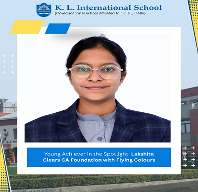 K. L. International School proudly congratulates its bright student Lakshita (Session 2024–25) for successfully clearing the CA Foundation Examination (January 2026) with an impressive score of 256 marks. The examination is conducted by the esteemed Institute of Chartered Accountants of India.