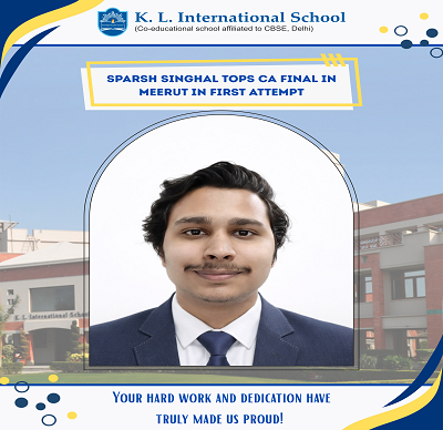 K. L. International School proudly celebrates the extraordinary accomplishment of its distinguished alumnus Sparsh Singhal (Batch 2020–21), who has brought immense pride and honour to his alma mater by successfully clearing the Chartered Accountancy (CA) Final Examination in his very first attempt.