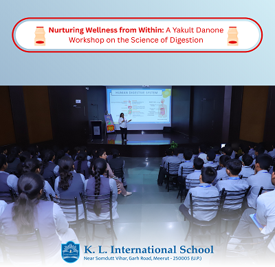 An illuminating and thought-provoking workshop on the Digestive System was conducted at K. L. International School, in collaboration with Yakult Danone India Pvt. Ltd. The session aimed to enlighten students about the intricacies of the human digestive process and the indispensable role of probiotics in fostering a healthy and balanced life.