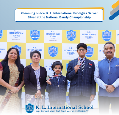 Exemplifying grace, grit, and glory, the prodigious talents of K. L. International School once again brought immense pride to the school. At the prestigious 7th Bandy National Championship 2025 (Ice Hockey), organised by the Bandy Association of Indians and held at the Himadri Ice Rink, Dehradun, two young virtuosos — Manasvi Vishnoi of Class IV and Atharv Vishnoi of Class VII were selected in the UP Team in recognition of their exemplary dedication and competence - dazzled with their commendable performance, each securing a Silver Medal.