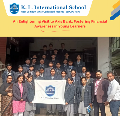 To strengthen financial awareness and real-world understanding among its learners, K. L. International School organised a structured educational visit to Axis Bank, Garh Road. The initiative sought to provide students with a comprehensive perspective on banking procedures, the principles of responsible saving, and the evolving landscape of modern digital banking.